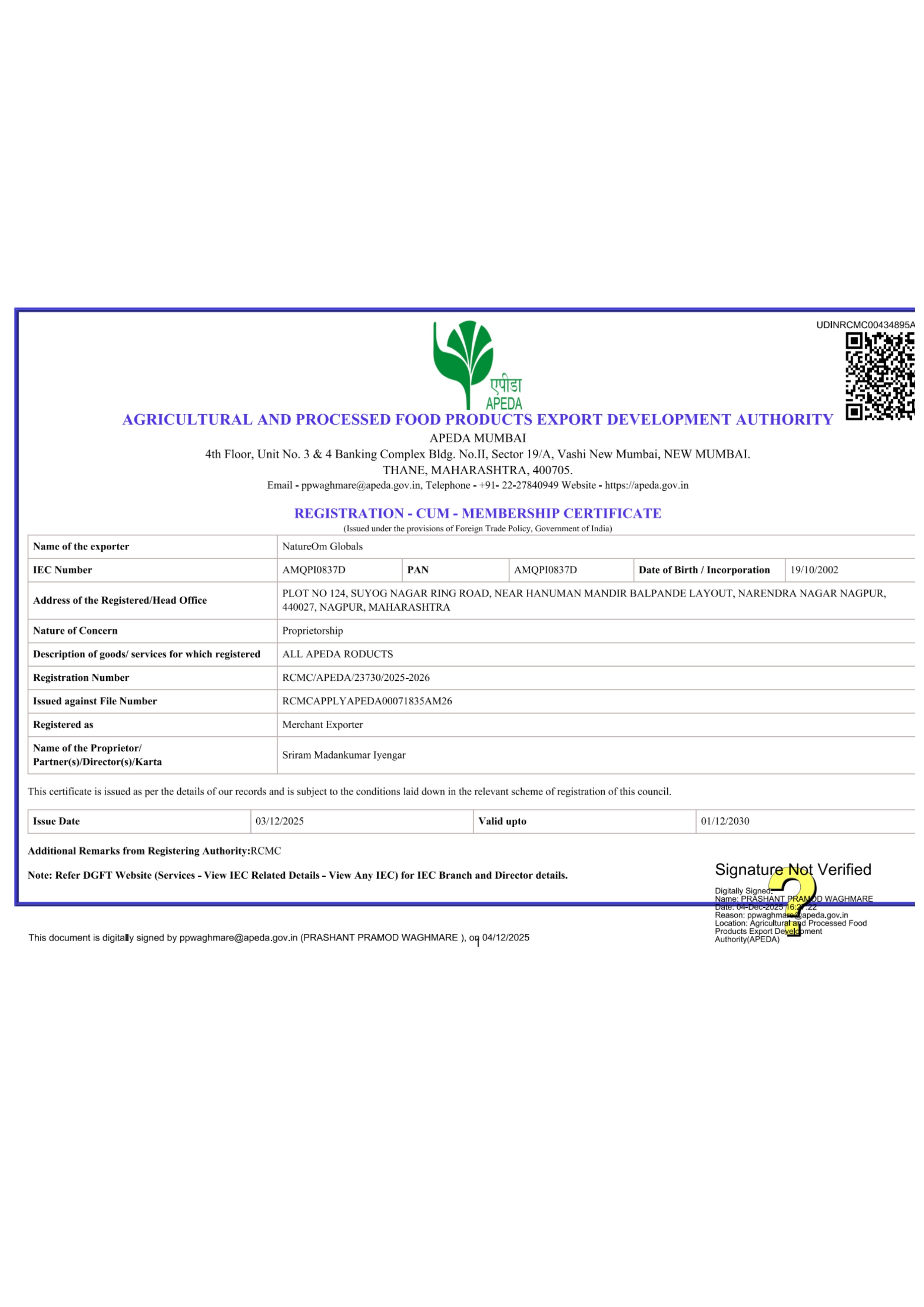 APEDA Registered | Phytosanitary Certificate | Residue Testing Reports | GlobalGAP Standards.